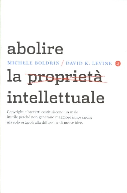 Abolire la proprietà intellettuale è il titolo di un interessantissimo libro di due economisti, uno italiano e uno statunitense, nel quale viene spiegata l'assurda situazione in cui si trova la civiltà moderna in tema di Brevetti e Copyright.