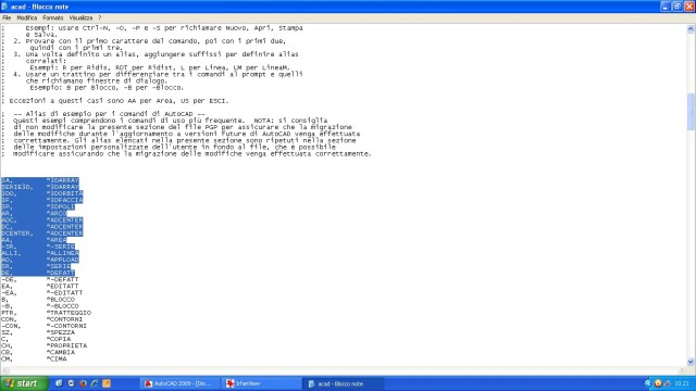 A questo punto copiate le definizioni qui sopra ed incollatele dentro il file; salvate e chiudete il blocco note; chiudete anche Autocad e riavviatelo.