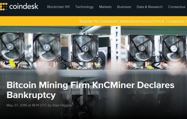 Qui sotto la notizia del fallimento del grande minatore svedese KNC Miner.