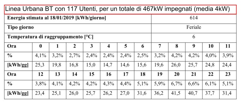 | Linea Bt | Nr. Utenti | P.Impegnata | Pmax serale | Pmed/utente | Coefficiente K |