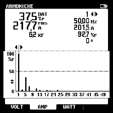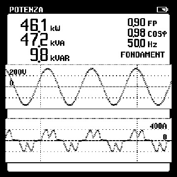 Da notare il Fattore di Potenza pari a 0,90, valore che si differenzia dal Cosfi a causa della spiccata distorsione armonica.