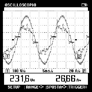 Qui si nota meglio la differenza tra la forma d'onda della tensione e quella della corrente.