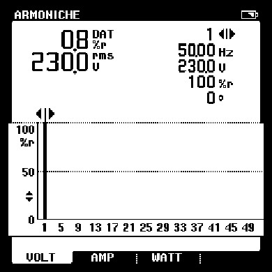 In effetti il tutto è confermato dall'Analisi Armonica, dove il tasso di distorsione (THD), sempre sul monofase, sembra trascurabile (è infatti inferiore allo 1%).