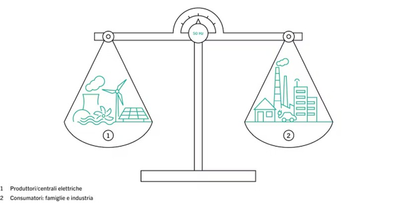- se la frequenza della rete aumenta oltre il nominale di 50 hertz, significa che c'è troppa produzione (bisogna sollevare il piede dall'acceleratore);