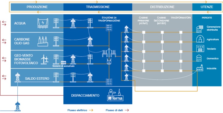 - La catena è l'elettricità che trasferisce l'energia dalla produzione al consumo