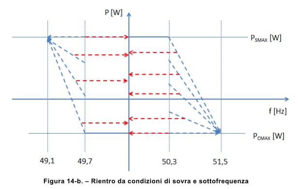 In pratica la norma, con una certa nonchalance, equipara un sistema di accumulo domestico ad una centrale in "riserva calda", prescrivendo (e quindi obbligando), ad essere pronto ad intervenire con le proprie batterie, qualora la frequenza della rete esca da opportuni intervalli prefissati.