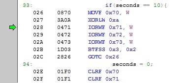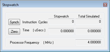 La finestra Stopwatch, attivabile tramite il menu Debug-->Stopwatch, consente di cronometrare sezioni di codice quando sono in esecuzione nel simulatore. I calcoli dello Stopwatch si basano sulle istruzioni eseguite e sui valori impostati per la frequenza del processore. Il tempo totale viene calcolato in base al numero delle istruzioni ciclo. In genere è usata per valutare le differenze di tempo che intercorre tra due istruzioni o per calcolare praticamente i cicli di ritardo che utilizzano istruzioni for/while.