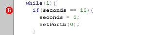 Tale comando rappresentato dall’iconanella toolbar interrompe l’esecuzione del programma. E’ possibile utilizzare anche il tasto F5 oppure tramite menu Debugger-->Halt. Una volta lanciato il comando, il debugger interrompe l’esecuzione del programma e si posiziona sull’istruzione che stava eseguendo. E' possibile riprendere l'esecuzione si atramite i vari comandi step e sia lanciando il comando run. E’ opportuno considerare che utilizzando un linguaggio di programmazione come il C, una volta lanciato il comando, il cursore del debug si può posizionare su una istruzione che non è detto che sia la prima istruzione assembler ottenuta dalla compilazione dell’istruzione C. Per esempio lanciando il comando, il debugger interrompe la sua elaborazione alla seguente istruzione