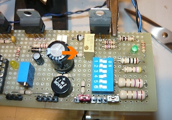 Naturalmente la parte "alimentatore" e' quella gia' montata in precedenza, quindi non ho fatto altro che aggiungere la parte interessata, a destra dell'alimentatore; al posto del commutatore, come vedrete, ho adoperato un DIP SWITCH che collega, volta per volta, le resistenze interessate.