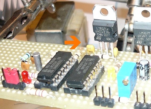Si tratta di un 7812 il cui compito e' fornirci una tensione di 12V che servira' per le applicazioni seguenti. Di seguito il particolare:
