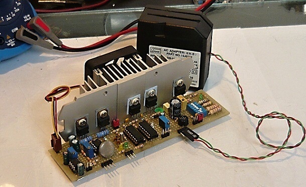 Il tutto dovra' essere servito da un idoneo trasformatore che fornisca una tensione alternata di circa 26V ed una corrente nominale di 2.5A. Io personalmente, non avendone uno sottomano, mi sono servito di uno switching, recuperato da una stampante, che eroga 30V ed 1.5A e che, per le ridotte dimensioni, ben si adatta all'insieme. (e' visibile nelle foto finali)