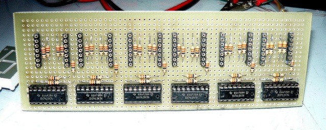 Possiamo ora montare il primo dei counter 4518 ed accertare che tutti i collegamenti siano fatti nel giusto modo; successivamente dovremo cominciare a montare anche i componenti sulla basetta dei display.