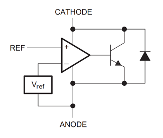 Supponendo che sia correttamente biased, il TLV431 può essere trattato come un amplificatore operazionale. La funzione di trasferimento da Vout a Viref è molto semplice da calcolare sotto le seguenti ipotesi: