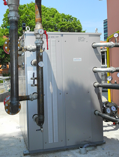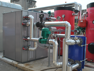 Impianto di trigenerazione con assorbitore utilizzato per freddo di processo dalla A. Gandola & C - Ponte San Marco, Brescia, azienda di produzione di cioccolato. Potenza elettrica 200 kW, termica 280 kW, frigorifera 105 kW.