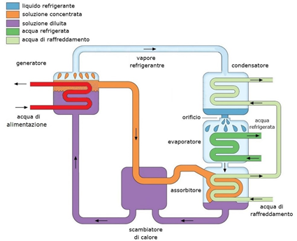 Le macchine ad assorbimento azionate da un fluido termovettore sono attualmente oggetto di un rinnovato interesse perché consentono di essere alimentate con qualsiasi tipo di sorgente termica, compreso il calore di scarto da un processo industriale, le energie rinnovabili o il calore recuperato da un cogeneratore.