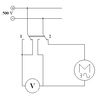 Un metodo di misura della resistenza di isolamento può essere eseguito in corrente continua a tensione non inferiore a 500 V, utilizzando lo schema di seguito raffigurato.