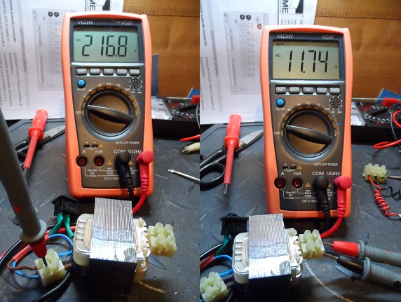 Di seguito le immagini propongono la misura della tensione di alimentazione ai capi del primario di un trasformatore, quindi la tensione di rete : 216,8Vac e quella al secondario del trasformatore di 11,74 Vac...