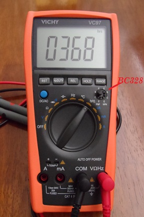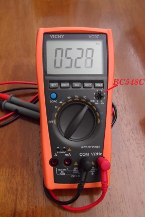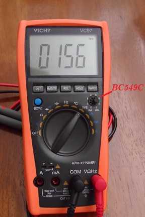 Molto in breve, il parametro “hfe” che ci fornirà il display, rappresenta il parametro β che esprime il rapporto fra l’intensità di corrente del collettore del transistor e quella di base,esprimendo il coefficiente di amplificazione del transistor; occorre aver presente che questo valore può essere differente fra due o più transistor dello stesso tipo, quindi nella valutazione si dovrà tener conto che il valore letto sia compreso fra quello indicato nel datasheet.