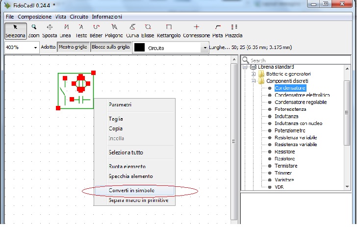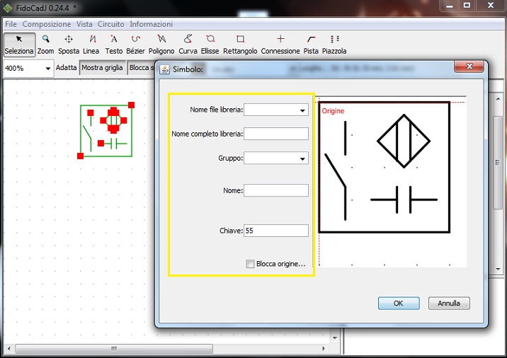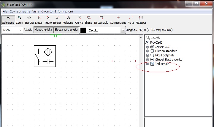 a questo punto FidoCadJ è pronto per realizzare la nuova libreria in librerie con i nuovi simboli