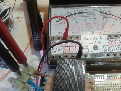 con il multimetro analogico si realizza inserendo lo strumento di misura in serie al circuito interessato,avendo dapprima selezionato la portata corretta relativamente al valore di ampiezza di misura,o nel caso questa non fosse nota di selezionare la portata maggiore dello strumento per ridurla graudalmente sino a leggere il valore di misura con maggior accuratezza;per questo tipo di misura valgono le considerazioni viste pe rla misura di tensione alternata,quello che si modifica nella misura delle due grandezze fisiche è l'inserimento dello strumento nel circuito sotto misura (in serie) nonchè quella dei resistori per la modifica della portata (in derivazione).