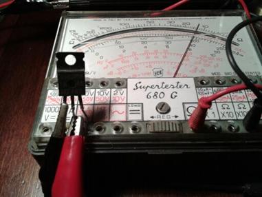Per verificare la bontà di un SCR ho utilizzato un multimetro analogico eseguendo delle misure sui rispettivi terminali, di anodo (A), catodo (K) e gate (G).