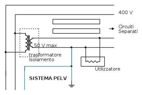 Per il sistema SELV occorrerà prevedere la bassissima tensione e la separazione elettrica rispetto agli altri circuiti, invece per il sistema PELV non c’è alcun divieto di collegare a terra le masse od eventuali punti del circuito di protezione.