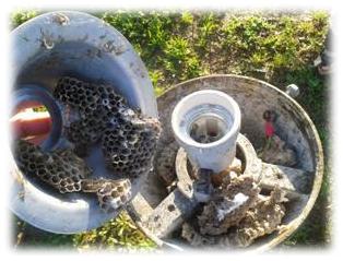 Apro il pozzetto e sopresa... il cavo che alimenta il nostro palo, nel punto che poggia sul fondo del pozzetto, non so per quale motivo “non ha la guaina del cavo” ed “i tre conduttori a bagno maria hanno perso il loro isolante” dal probabile contatto nel tempo con l’acqua presente sul fondo del pozzetto.