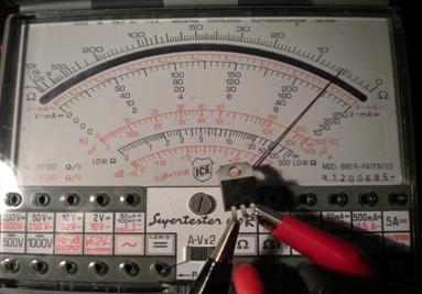 Ora, considerando che quando il dispositivo è attivo (movimentazione cancello) il compito di alimentare la lampada (che rimane sempre accesa) spetta al TRIAC (BTB12-600B), la mia attenzione sarà dapprima proprio per lui. Pertanto, dopo aver smontato la schedina, dissaldo il componente e lo verifico con il mio fido multimetro analogico ICE 680 G in portata per ohm, trovando il TRIAC ... in corto su tutte e tre le giunzioni ... et voilà è lui il colpevole...