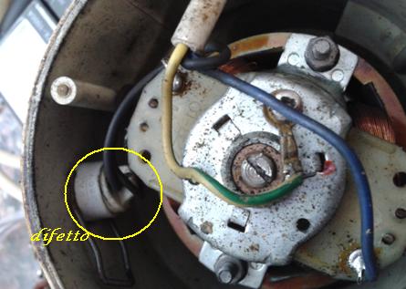 Prima di tentare la riparazione, con il multimetro in portata per ohm, provo a misurare gli avvolgimenti del motore che risultano ok; verifico anche la bontà delle spazzole che, nonostante il tempo, sono ancora efficienti. Pertanto bypasso provvisoriamente il pulsantino e provo ad alimentare il macinino che risponde funzionando perfettamente.