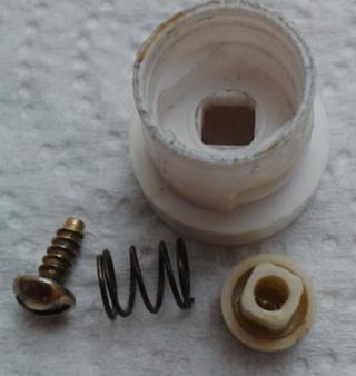 Osservo il pulsantino e trovo che è possibile smontarlo in ogni sua parte,la sua realizzazione è semplice e robusta è rimasto perfettamente efficiente come la molla che fa da rinvio e l’elemento di contatto realizzato con una normale vite di ottone che prima di rimontarla la pulisco dai segni di bruciatura che ha lasciato l’arco elettrico delle varie accensioni eseguite nel tempo.