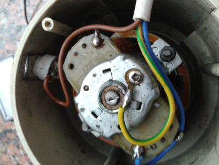 Dapprima verifico se effettivamente funzioni o meno. Alimentandolo non dà segni di vita; controllo la bontà dei collegamenti nella spina da 10 A del tipo commerciale; con buone probabilità è stata a suo tempo cambiata (manca anche il terminale di terra...) ed ora la sua plastica, rigida al punto di rompersi, mostra i segni del tempo. Anche in questo caso i collegamenti sono buoni, ed a questo punto immagino che, avendo lavorato per tutto questo tempo, il suo motorino abbia, o meglio non abbia più, le spazzole per quanto consumate; quindi apro il macinino per accedere al motorino e quindi alle spazzole.