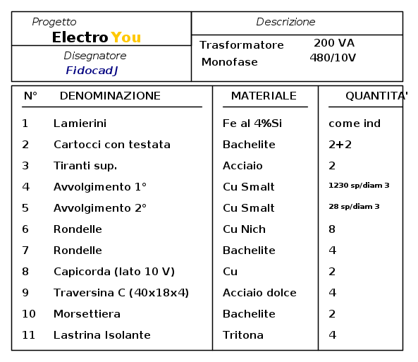 dopo un MAT con FidocadJ, non poteva mancare un Trasformatore Monofase ...un pò ingombrante per il thread Giocare con fidocadJ ... :)