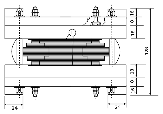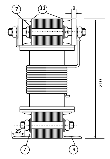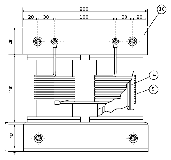 Il trasformatore è del tipo a secco ovvero raffreddamento in aria,con colonne gradinate ed i giunti intercalati, la giunzione dei lamierini delle colonne avviene per serraggio con legature di nastro mentre pe ri giochi attraverso bulloni esterni sulle traverse di compressione in profilato a sezione C, l'isolamento del nucleo è ottenuto fra gli avvolgimenti con cartocci in bachelite fusa con flange.