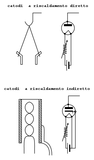 Il tubo elettronico è costituito da un elemento detto catodo che quando riscaldato ad una determinata temperatura emette elettroni (può essere a riscaldamento diretto, oppure a riscaldamento indiretto), e da una o più griglie(il numero delle griglie varia da uno a sei) che hanno appunto la funzione di controllare l’emissione di elettroni, poi è presente un ulteriore elemento detto anodo o placca (assume diverse forme e sono molto precise nella loro struttura) che è deputato a raccogliere gli elettroni che sono passati attraverso le griglie.