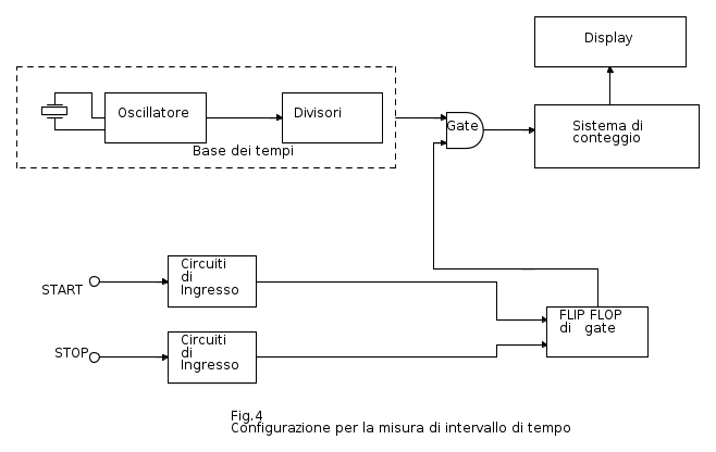 Per analizzare il funzionamento del contatore utilizzato come misuratore di intervallo di tempo si fa riferimento al seguente schema a blocchi: