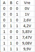 dove si può osservare che ad ogni numero binario di ingresso corrisponde un gradino di tensione ai capi della Re.