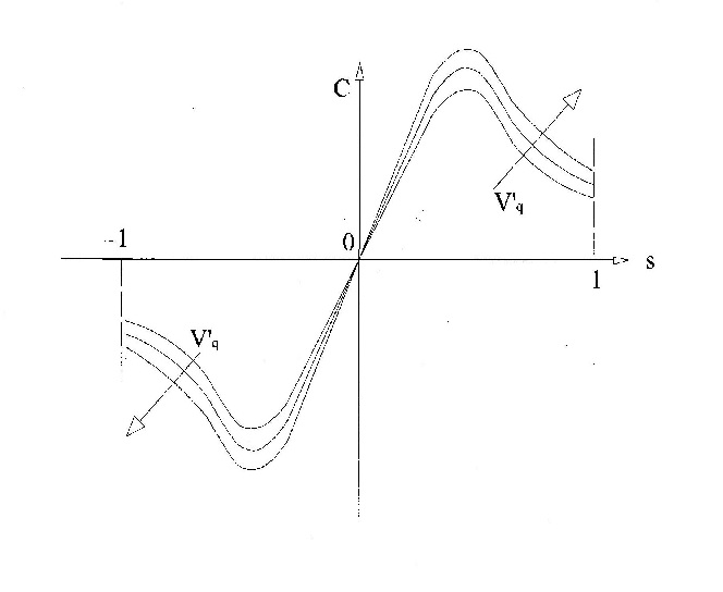 Mentre se si varia la componente in quadratura Vq della tensione impressa (Vr), quando Vd=0, non si varia la posizione del punto di nullo, ma si riesce ad aumentare la differenza tra coppia massima e coppia minima, quindi la pendenza del tratto stabile, come si vede in figura: