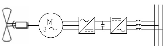 Un convertitore come quello presentato può essere posto anche in uscita ad un semplicissimo asincrono con rotore a gabbia, in modo tale da generare potenza elettrica ad una frequenza costante f prefissata, anche al variare aleatorio delle condizioni del vento e quindi della frequenza delle correnti lato macchina, realizzando la conversione dell’energia in maniera più semplice.