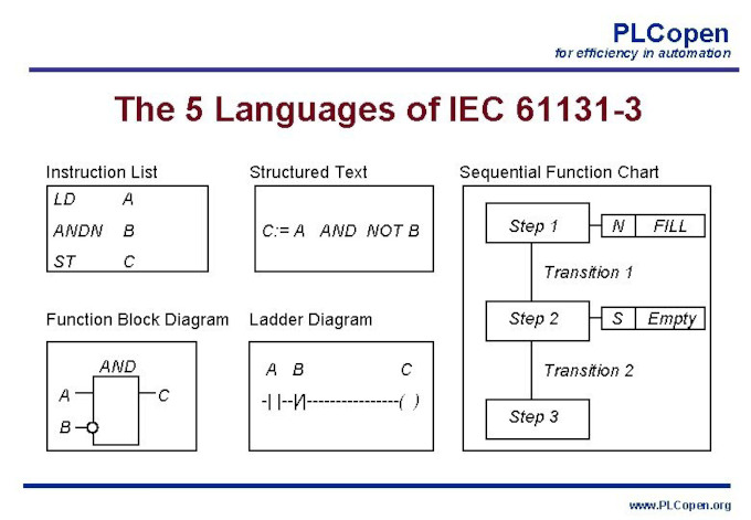 Lo standard IEC 61131-3, nato ancora nel 1993 e voluto dall'organizzazione PLCopen, definisce gli elementi base per la programmazione nell'automazione industriale con PLC, quali linguaggi, tipi di dati ed unità organizzative del software.