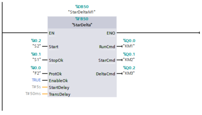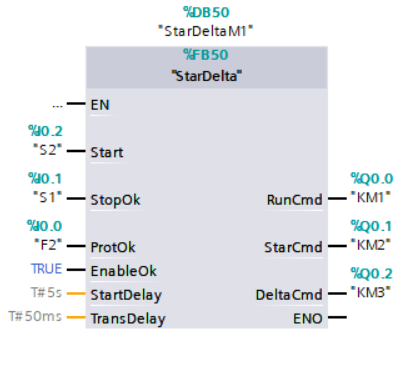I connettori EN/ENO, che compaiono anche in FUP, rappresentano rispettivamente l'abilitazione in ingresso ed in uscita: le istruzioni con questo meccanismo vengono eseguite se l'ingresso di abilitazione EN è TRUE, se l'elaborazione del box è regolare allora l'uscita ENO sarà anch'essa a TRUE, se si verifica un errore nel corso dell'elaborazione, ENO viene resettata. Se EN non è interconnessa, l'istruzione viene sempre eseguita.
