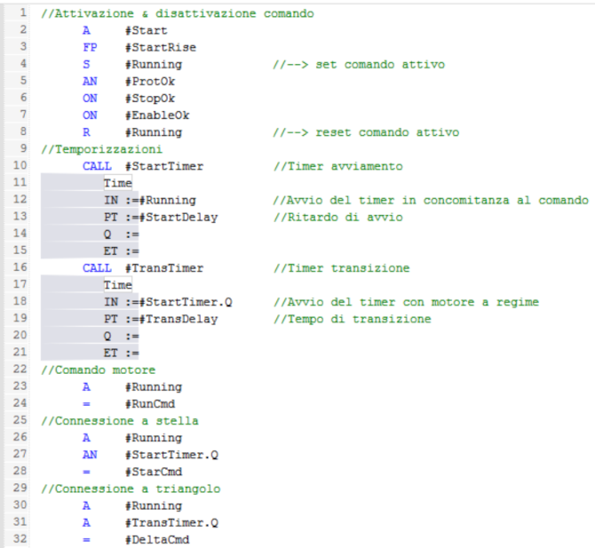 I blocchi in linguaggio AWL-KOP-FUP sono ulteriormente divisi in segmenti, ciascuno con un rispettivo titolo e commento.