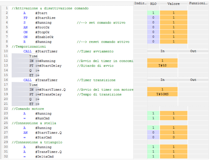 - lista istruzioni: AWL (Anweisungsliste) / STL (Statement List)