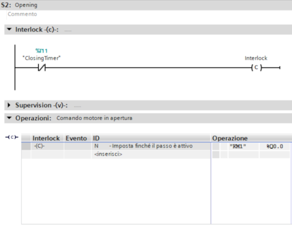 per poi usare l'interblocco "C" nelle rispettive azioni, che si può modificare nella "vista passo singolo".