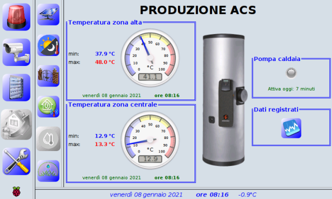 La scelta è caduta sul piccolo Raspberry Pi 2 (eravamo nel 2015) che veniva comodo anche per far girare, oltre al webserver per l'interfaccia, anche altri servizi ad esempio di raccolta dei dati energetici (EmonCMS).