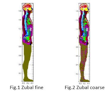 Punto importante sulla manipolazione dei modelli è la possibilità di ridurre la risoluzione in quanto, mentre il modello HUGO è distribuito con diverse discretizzazioni, ciò non accade per gli altri modelli; ci si può trovare quindi di fronte ad una dimensione del voxel eccessivamente piccola e, di conseguenza, ad un numero di voxel così elevato da non consentire una semplice e ragionevolmente veloce analisi e simulazione. Si rende così necessaria l’elaborazione di un software capace di ridurre la risoluzione del modello evitando il più possibile la perdita di informazioni, adeguando quindi i tempi di simulazione, valutando il trade-off tra costo computazionale e accuratezza dei risultati.