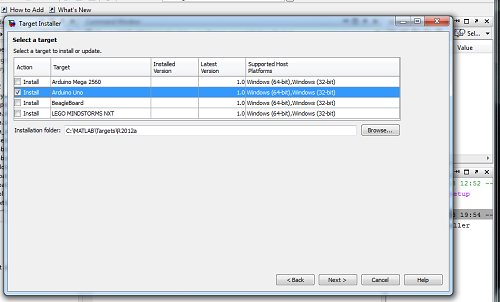 Per farlo basta digitare targetinstaller nella Command Windows di Matlab e seguire passo passo le istruzioni.