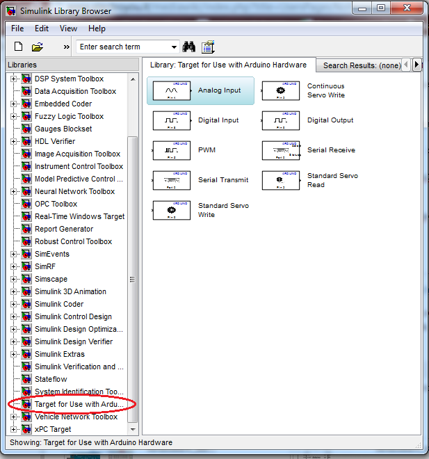 Se conoscevate già l'ambiente Simulink, potete notare che, tra l'elenco dei blocchi, sono comparsi dei blocchi particolari che si riferiscono alle operazioni base che è possibile compiere tramite i pin di Arduino.