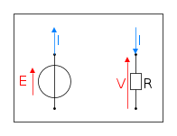- Nel Generatore il positivo della tensione (punta della freccia) coincide col verso della corrente, hanno lo stesso verso; questa è detta "convenzione del generatore".