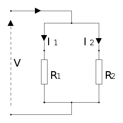sia I la corrente che alimenta la serie e sia V la tensione cje le alimenta. La corrente si ripartisce sulle due resistenze secondo le seguenti relazioni: