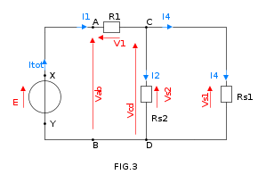 - Fig.1 (si, ho saltato la Fig.2). Calcolata I4 è facile il calcolo delle tensioni su R2 e R3: